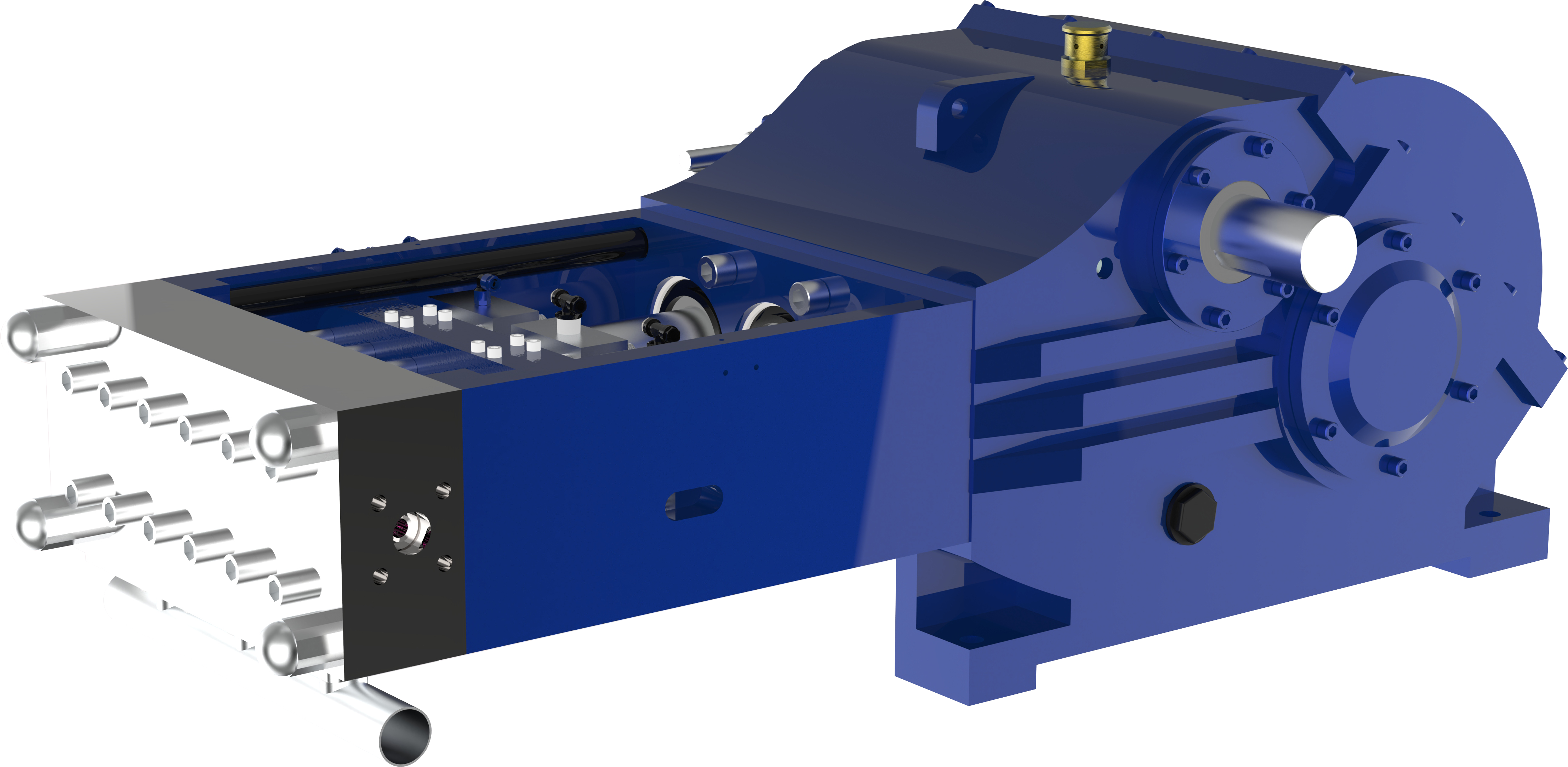 The RTD-200 High-Pressure Plunger Pump is designed using advanced technologies, delivering outstanding performance across a variety of industrial applications. The power end features an export-type housing with forced lubrication, ensuring enhanced durability and efficient operation. The high-speed shaft and crankshaft are driven by precision herringbone gears, which provide stable, reliable power transmission while minimizing friction, improving lubrication, and reducing operational noise. This design also helps lower the temperature rise of the power end, allowing for continuous, long-term operation.